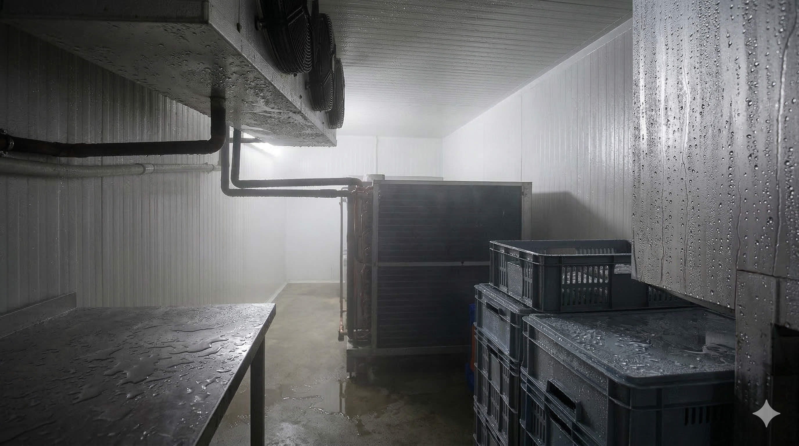 A condensação em câmaras frias ocorre quando vapor de água do ar encontra superfícies frias dentro da estrutura. Entenda por que isso acontece e quais fatores da operação influenciam esse fenômeno.
